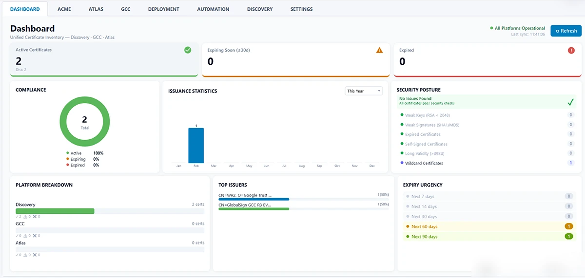 組み込みの証明書検出、直感的なインターフェース、および合理化された機能を備えたTLS Connectは、従来のCLMツールに通常関連する管理およびコストオーバーヘッドなしに、証明書の自動化と管理をアクセス可能にします。これにより、より小さな環境と制限されたIT予算に適している一方で、スケールで動作するために必要な自動化を提供します。